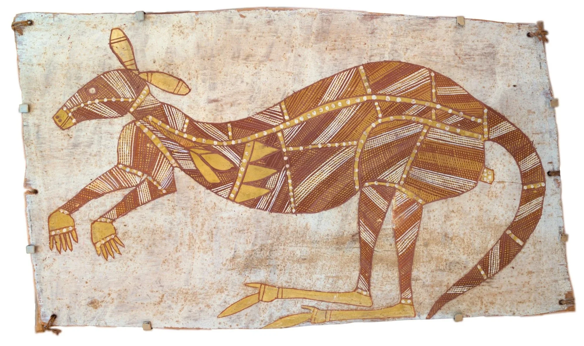 Kurrajong (Brachychiton diversifolius) with ochre pigment and PVC fixative, 187 cm (length)