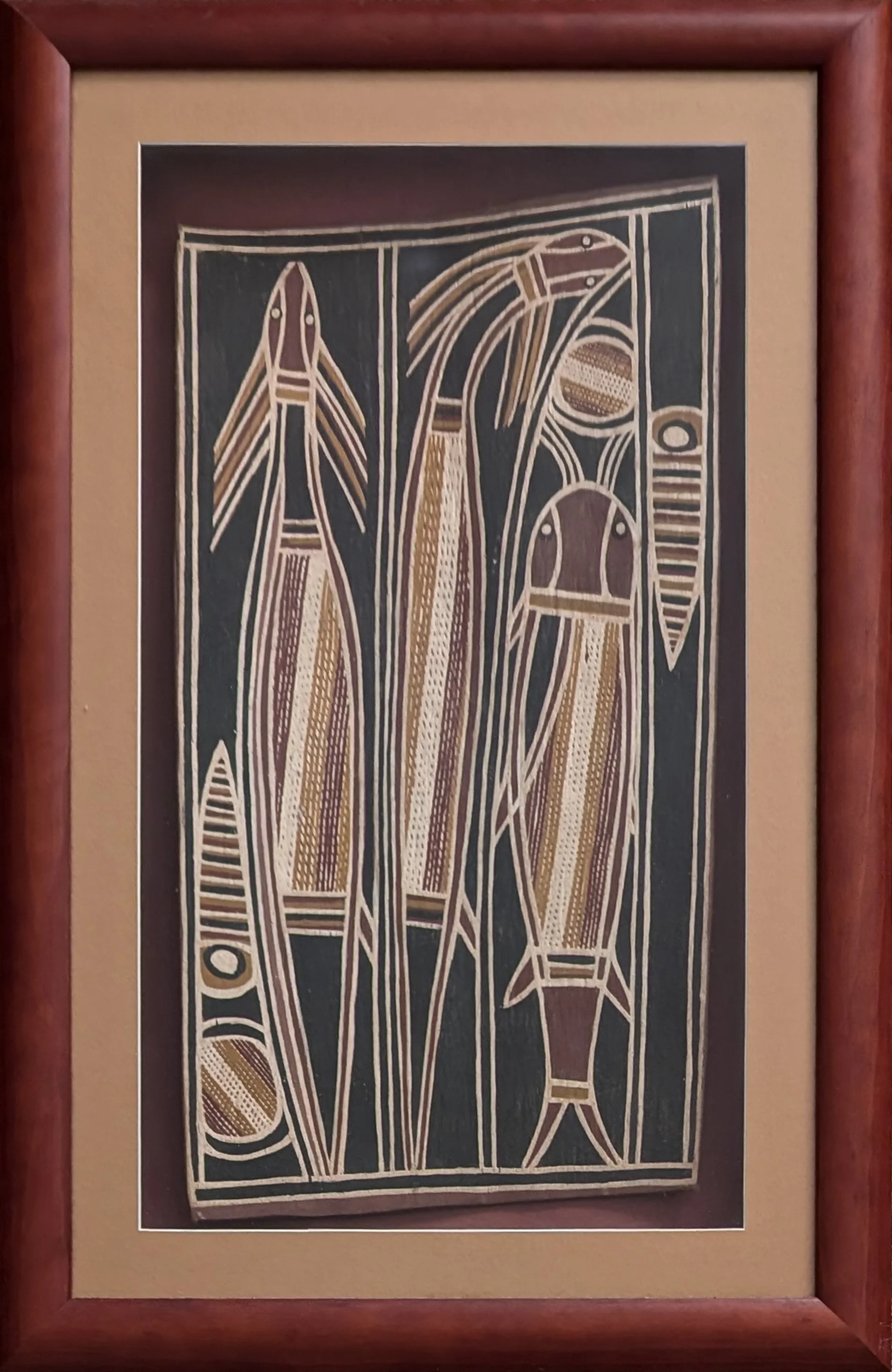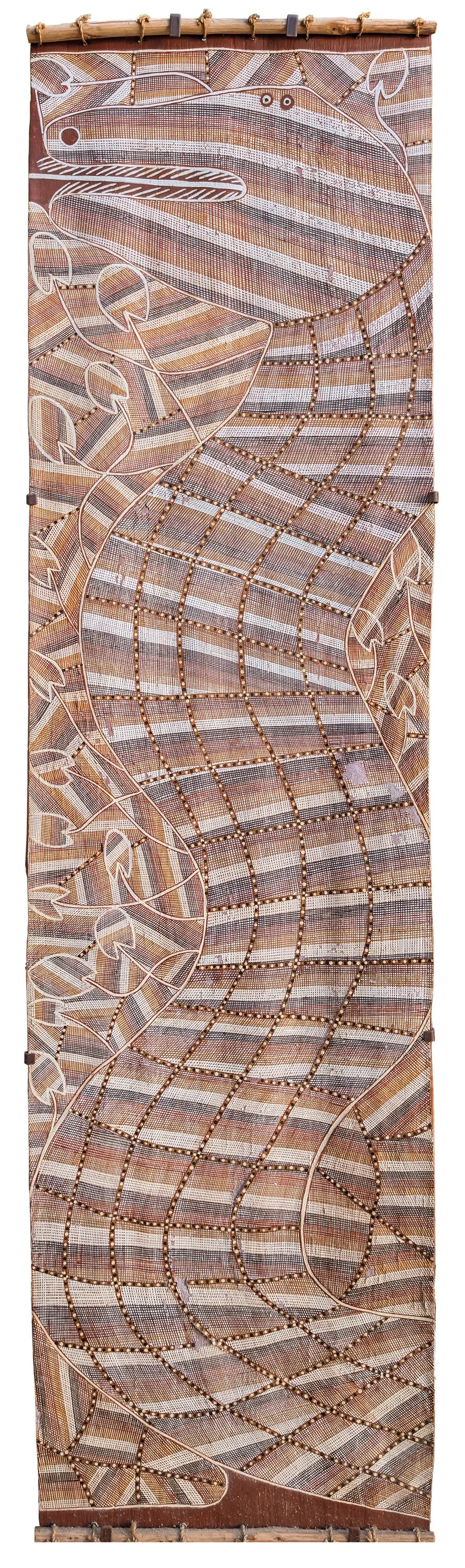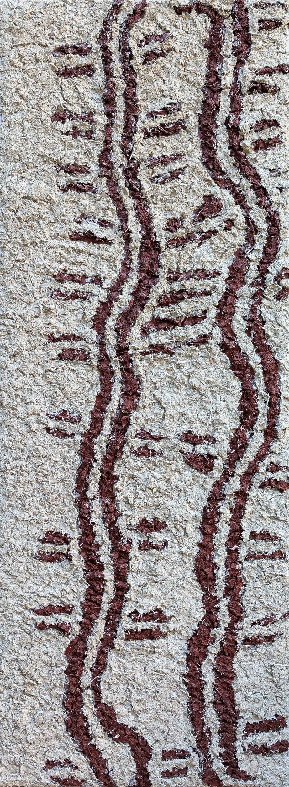 wamulu plant fibre, natural ochre and binder on board, 120 x 45 cm