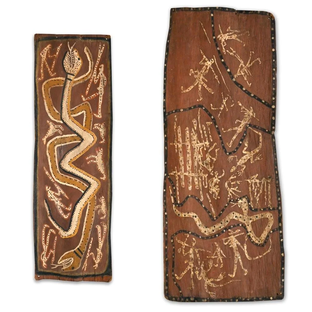 Bobby Nganjmirra’s work has been featured in a number of major exhibitions, including Old Masters - Australia’s Great Bark Artists at the National Museum of Australia in 2013, The Continuing Tradition at the National Gallery of Australia in 1989 and Kunwinjku Bim at the National Gallery of Victoria in 1984.